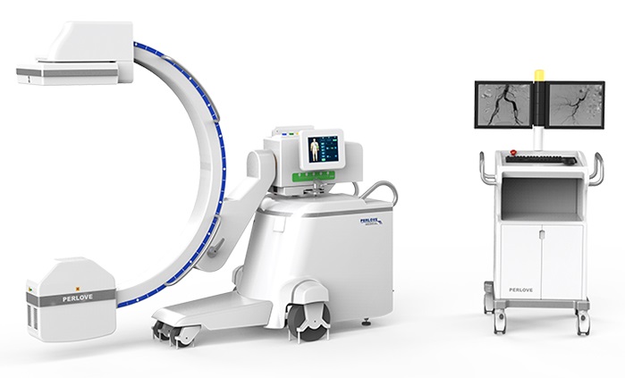 作为一种更加先进的技术,数字平板探测器还在介入治疗中被广泛地应用,如专门为周边介入治疗而设计的移动式平板介入C形臂PLX7100A,它配备了新型的大尺寸非晶硅动态平板探测器,具有更大的视野范围,能够对胸、腹、盆腔实现一次全覆盖,减少曝光次数、降低辐射剂量、避免重叠遗漏、缩短手术时间。