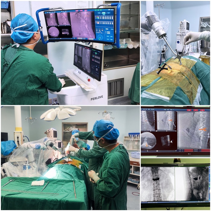 研究人员选取了2016年2月至2018年5月进行椎间孔腰椎椎体间融合术(TLIF)治疗的的100名患者,均分成机器人辅助置钉的RA组和传统开放式影像设备引导下徒手置钉的FG组。入组患者均为透视片诊断为腰椎退行性病变,且进行不低于6个月的保守治疗后,症状没有减轻。医师对两种术式充分介绍后,患者自由选择手术方式。手术由2名医师完成,每位医师独立完成RA组和FG组各25例手术。
